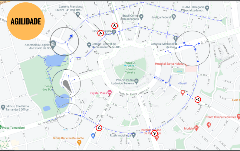 2. Alameda dos Buritis x Rua Dona Gercina Borges (sentido Leste/Oeste) não terá permissão de conversão à esquerda para acesso à Praça Cívica.