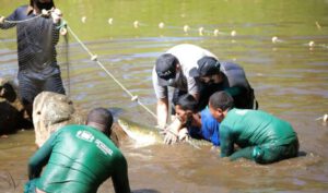 Pirarucu é resgatado de lago no Setor Jaó