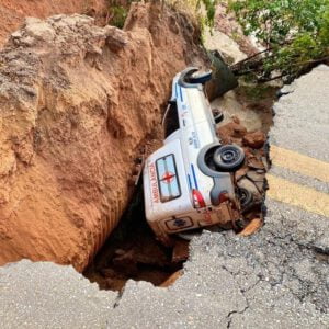 Trecho da GO-080 se rompe e engole ambulância em Jaraguá