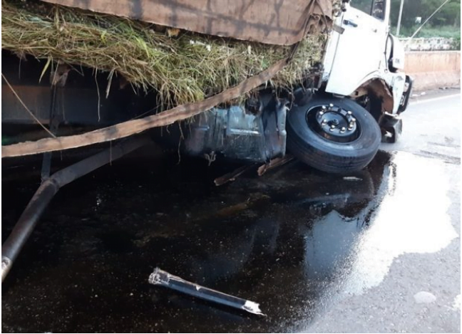 Caminhão quebra, provoca acidente e deixa BR-070, em Águas Lindas, parcialmente interditada