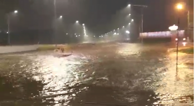 Vídeos que circulam em redes sociais mostram que o alto volume de chuva alagou várias ruas de Catalão e deixaram algumas pessoas ilhadas à noite.