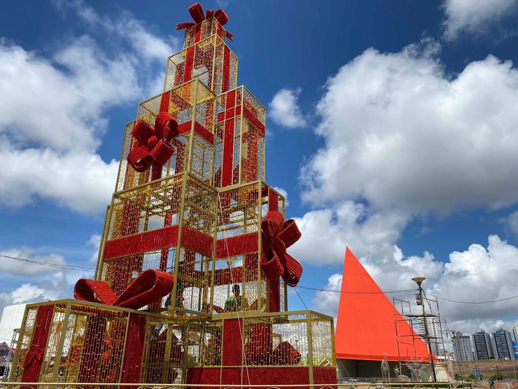 Prefeitura prepara a tradicional árvore de Natal do Parque Vaca Brava, em Goiânia