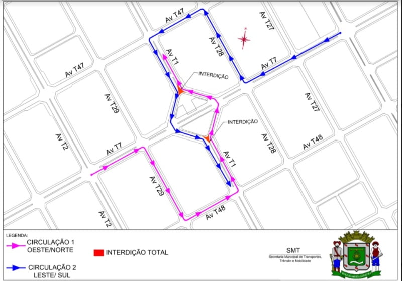Trânsito é alterado na Praça Gilson Alves de Souza para obras do corredor da T-7