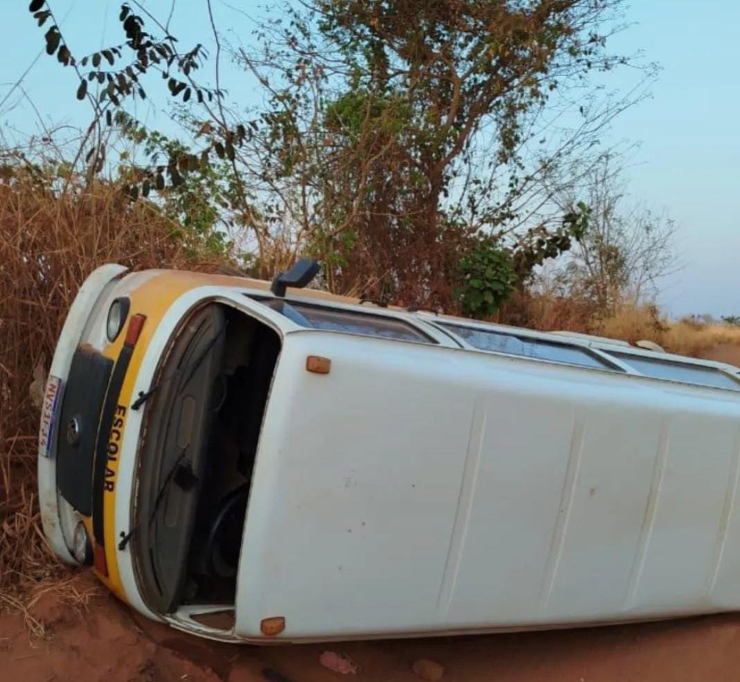 Ônibus escolar tomba na zona rural de Bela Vista de Goiás