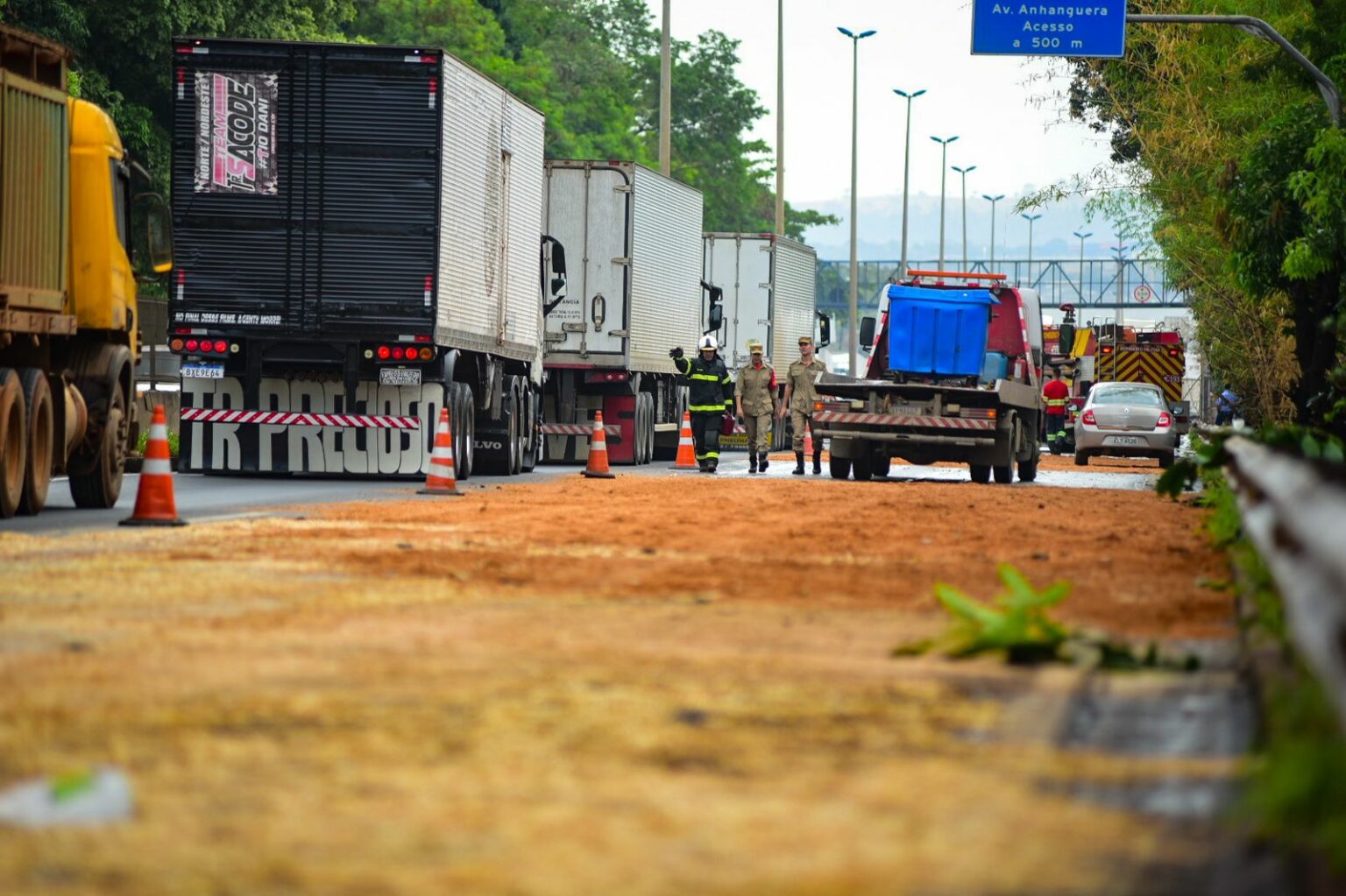 Acidente com caminhão-tanque bloqueia BR-153 e derrama 18 mil litros de óleo diesel, em Goiânia