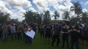 Protesto de motoristas de aplicativo trava o transporte coletivo na região central de Goiânia