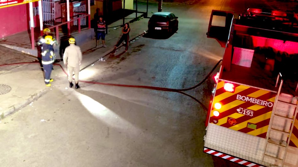 Pessoas controlam princípio de incêndio em padaria, em Valparaíso de Goiás
