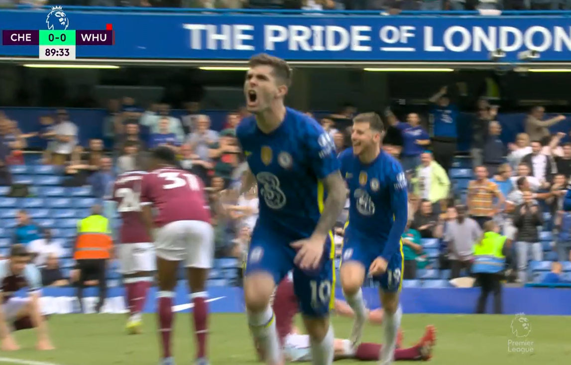 Pulisic marca no fim e Chelsea vence West Ham pelo Campeonato Inglês