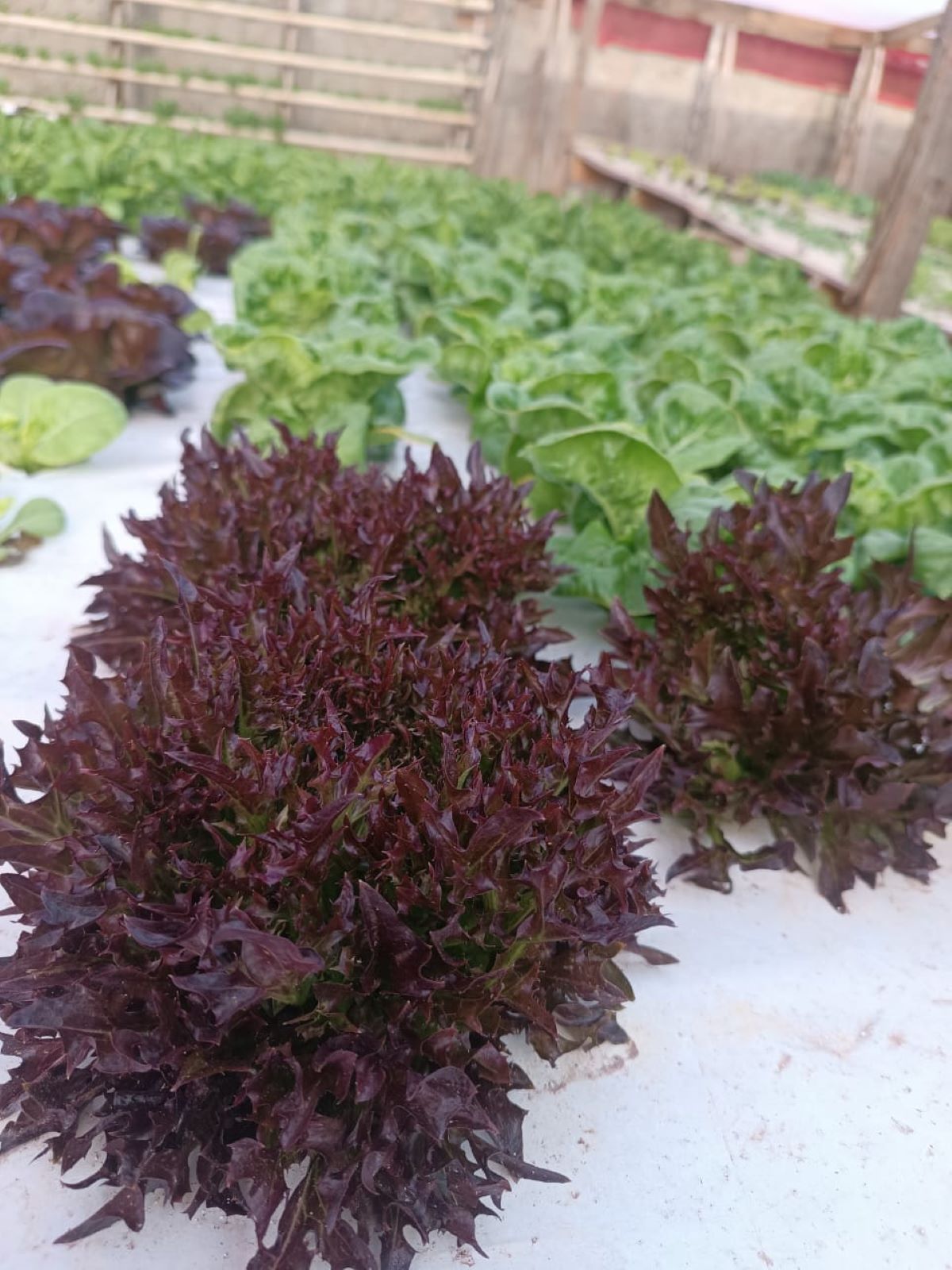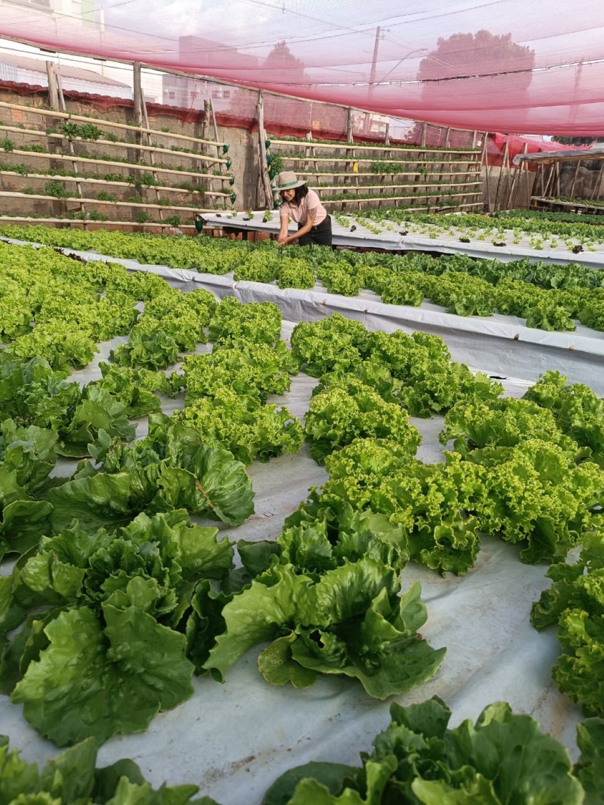 Ao todo, são cultivadas no mínimo 18 variedades de hortaliças no local. O trabalho começa com a semeadura em um espaço que ela chama de berçário. Após a germinação, cada mudinha é transferida para outro berçário maior, ainda em terra. Depois de 15 dias, as hortaliças são transferidas para os recipientes com água.