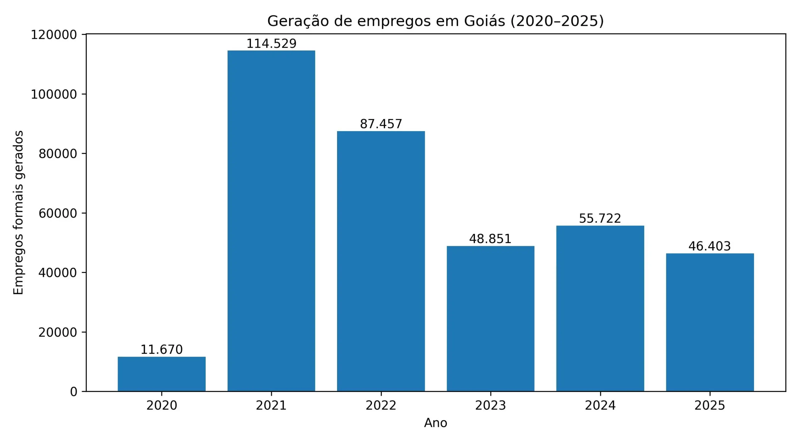 Veja o saldo de criação de empregos ano a ano em Goiás: