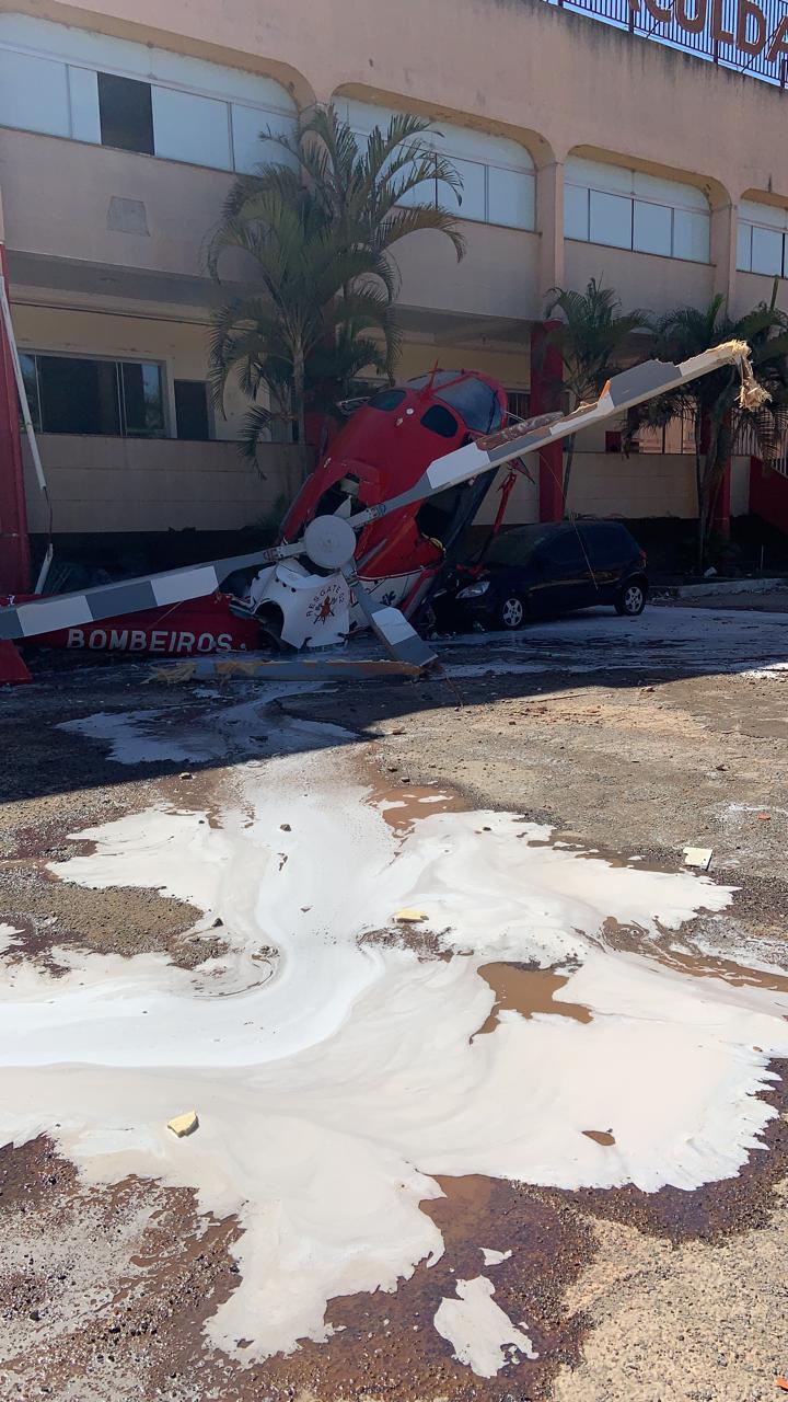 Um helicóptero do Corpo de Bombeiros do Distrito Federal caiu, nesta quinta-feira (30), em Taguatinga, cidade satélite de Brasília. O acidente ocorreu ao lado de uma faculdade. A aeronave de resgate, com cinco ocupantes, atingiu um carro que estava estacionado no local.