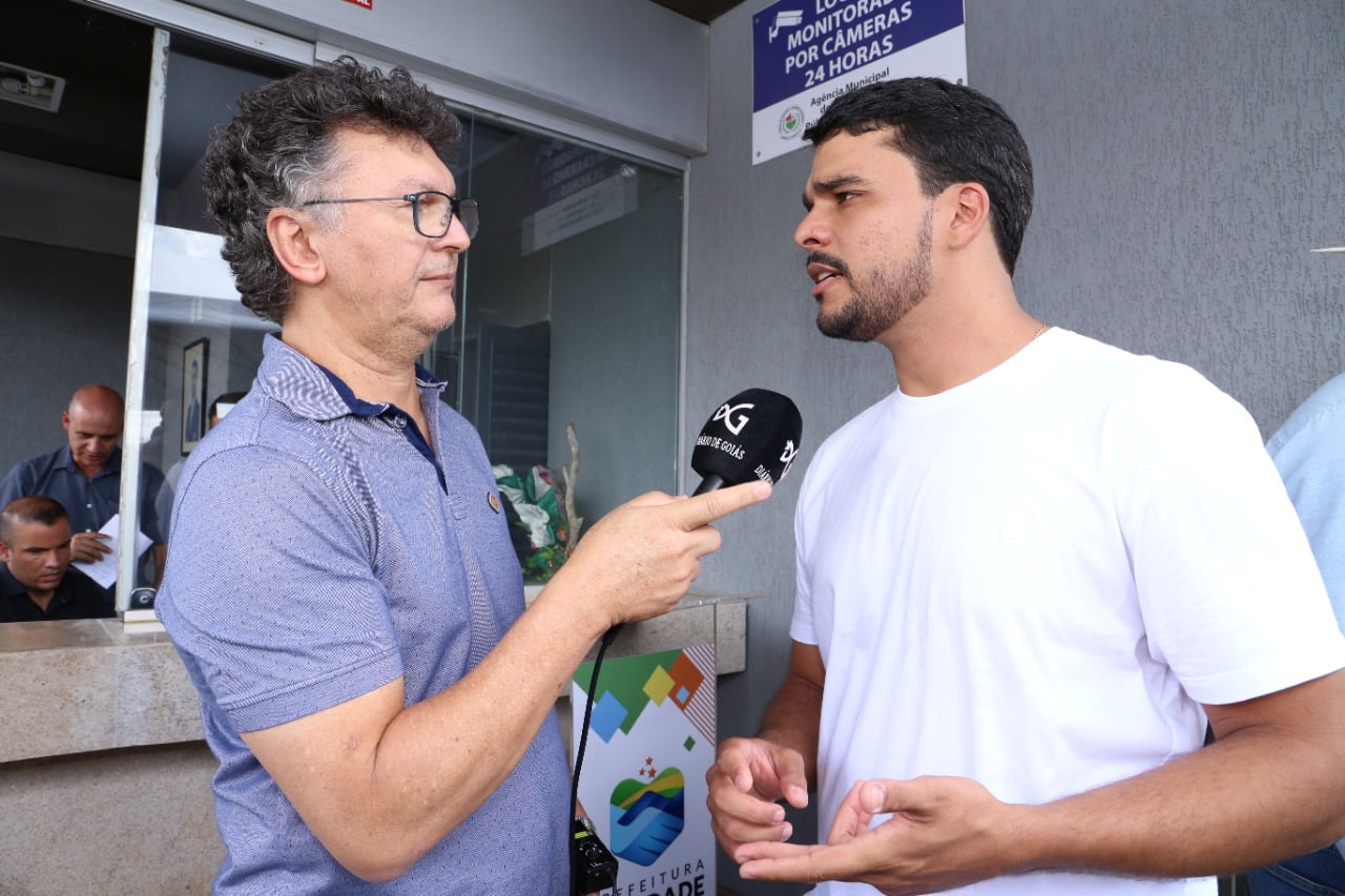 O prefeito de Trindade, Marden Júnior concede entrevista ao jornalista Altair Tavares (Foto: Iris Roberto)