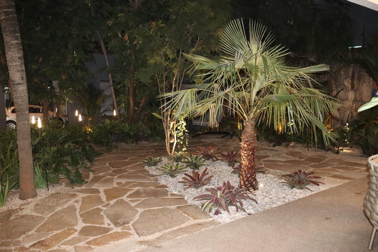 Outra característica marcante deste projeto é a integração da cultura regional em sua essência. Móveis e tapetes de design brasileiro celebram a riqueza e a diversidade da herança cultural do país. Além disso, ela demonstra seu compromisso com a economia e a sustentabilidade ao aproveitar pedras existentes da antiga casa, conferindo-lhes uma nova vida através de uma pintura, resultando em uma estética nova.