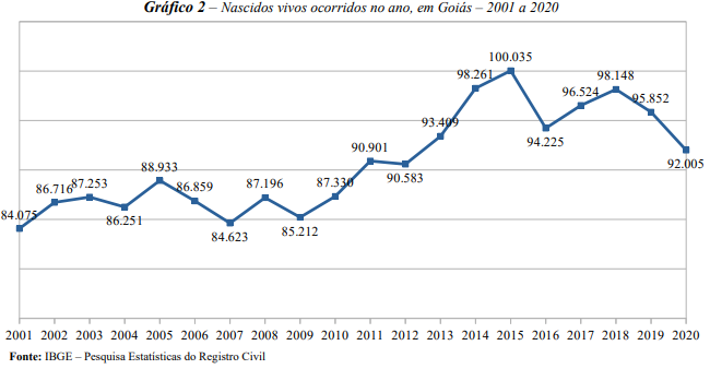 O número de nascimentos registrados em cartórios de Goiás atingiu o menor nível desde 2012. Os dados foram divulgados no levantamento do Instituto Brasileiro de Geografia e Estatística (IBGE), com base no Registro Civil.