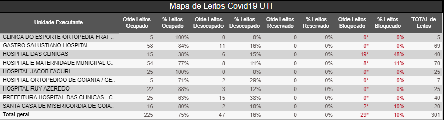 Leia mais sobre: Taxa de Ocupação - Leitos covid-19 / Destaque / Goiânia