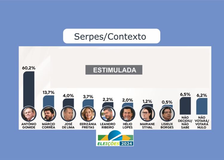 O segundo colocado é o pré-candidato Márcio Correa (PL), que aparece com 13,7%. Na sequência, estão: José de Lima, com 4%, Eerizânia Freitas (União), com 3,7%, Leandro Ribeiro (MDB), com 2,2%, Hélio Lopes (PSDB), com 2%, Mariane Stival, com 1,2% e Lisieux Borges (PSB), com 0,6%. Os indecisos somam 6,5%, enquanto os que indicam voto em branco ou nulo marcam 6%.