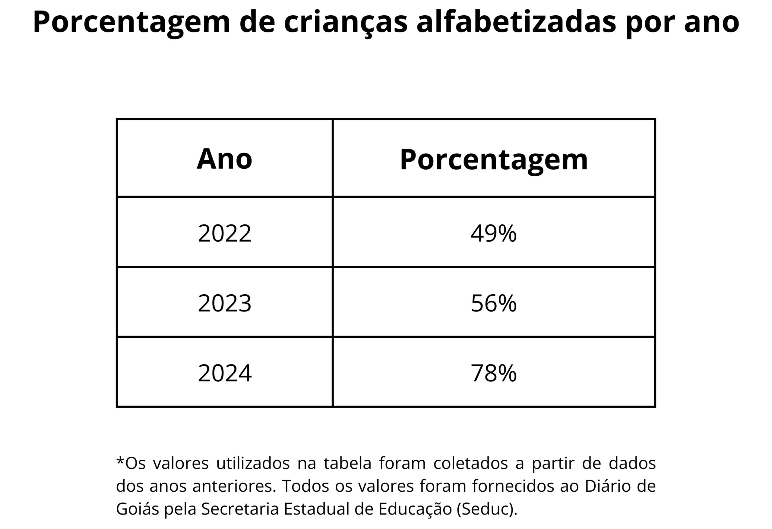 O Governo de Goiás, por meio da Secretaria de Estado da Educação (Seduc), lançou o Programa AlfaMais Goiás, com objetivo de fortalecer o regime de colaboração entre Estado e Municípios, garantindo a alfabetização de todas as crianças goianas. Segundo a superintendente dos anos iniciais e finais da Seduc, Giselle Faria, a idade prevista das crianças integradas no programa são aquelas que estão no final do segundo ano do ensino fundamental.