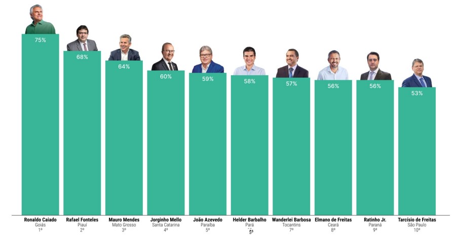 Por fim, Caiado ainda obteve desempenho expressivo em agricultura, com 81% de aprovação, segunda melhor colocação; e em meio ambiente, com 46%. O nome do governador goiano ainda aparece em quarto lugar nas áreas de moradia, urbanização e saneamento; e turismo, cultura e eventos.