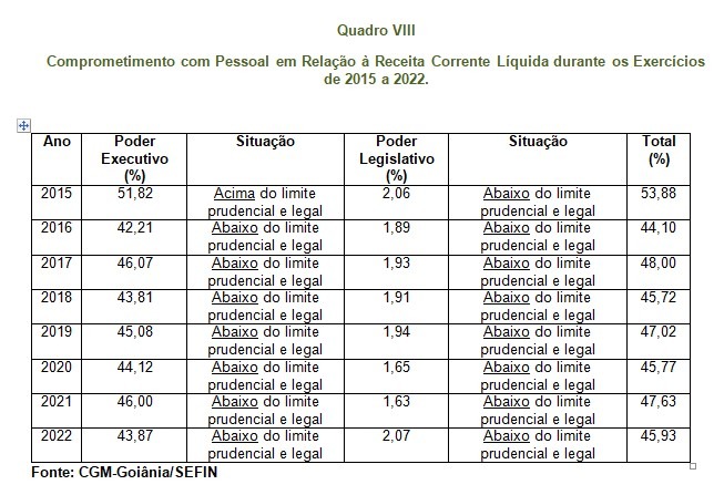 A Prefeitura de Goiânia divulgou o Relatório de Gestão Econômico-Financeiro referente a 2022. O documento mostra que as despesas com pessoal ficaram abaixo do limite prudencial estabelecido pela Lei de Responsabilidade Fiscal (LRF).