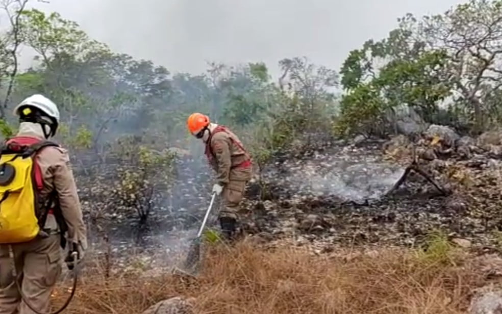 Bombeiros combatem incêndio na Chapada dos Veadeiros pelo 5º dia