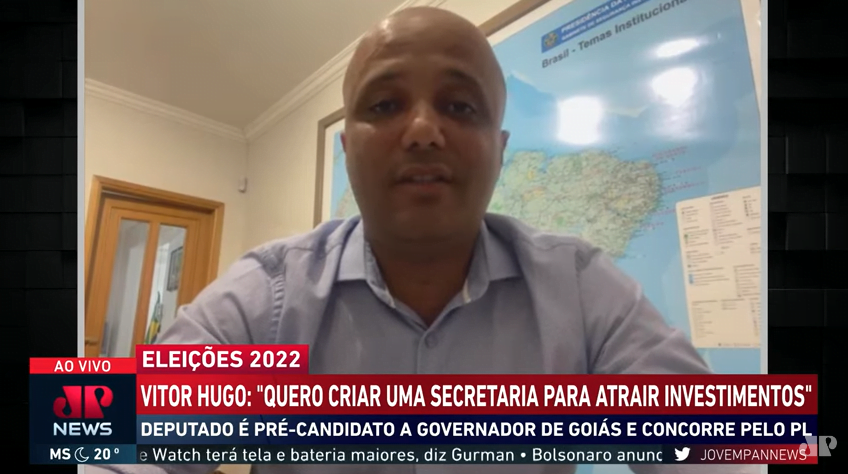 Pesquisa Record TV/Real Time Big Data: Caiado, 45%; Mendanha, 21%; Vitor Hugo, 10%
