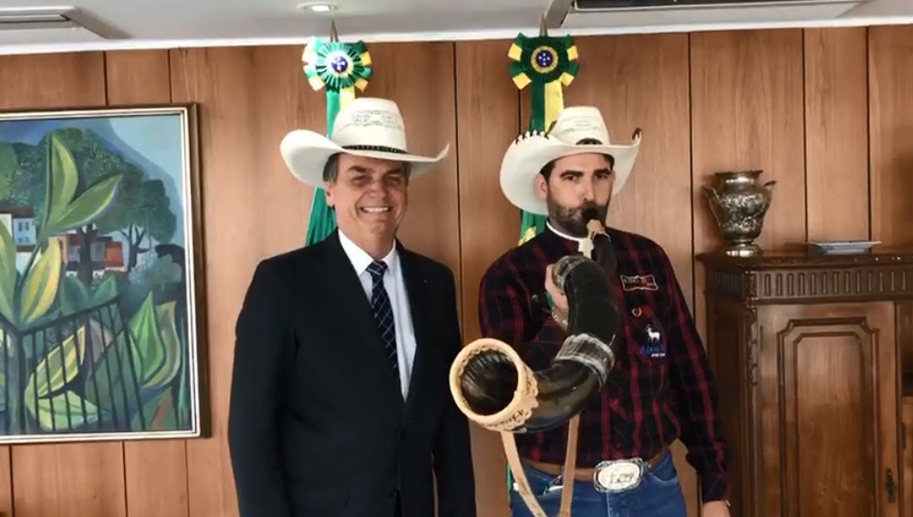 Padre goiano toca berrante ao lado de Bolsonaro: “Que chifre é esse aí?” questiona o presidente
